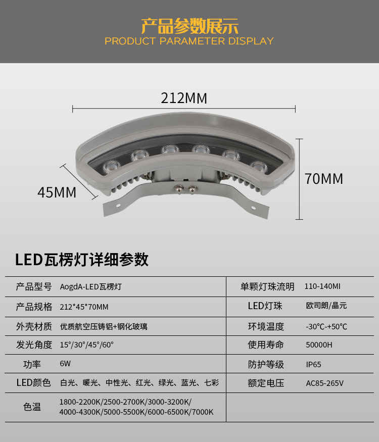 產(chǎn)品材質(zhì):壓鑄鋁+鋼化玻璃;